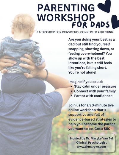 I’m Dr. Maryke Van Zyl, a licensed psychologist who specializes in parenting and relationships for dads. As both a parent and a psychologist, I know how hard it is to break old cycles while trying to show up as the dad you want to be. For years, I’ve helped fathers move from frustration and disconnection to confidence and closeness with their kids.